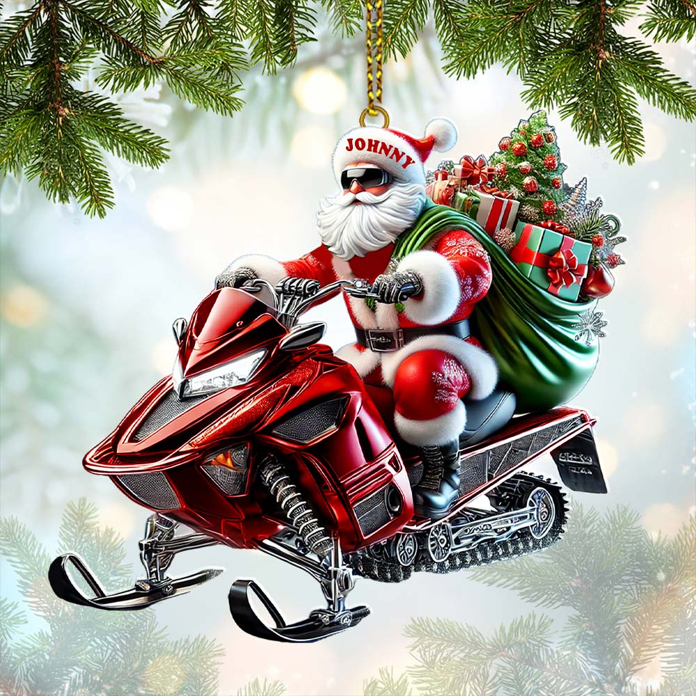 Custom Name Santa Mountain Bike Ornament, Santa Christmas Gift
