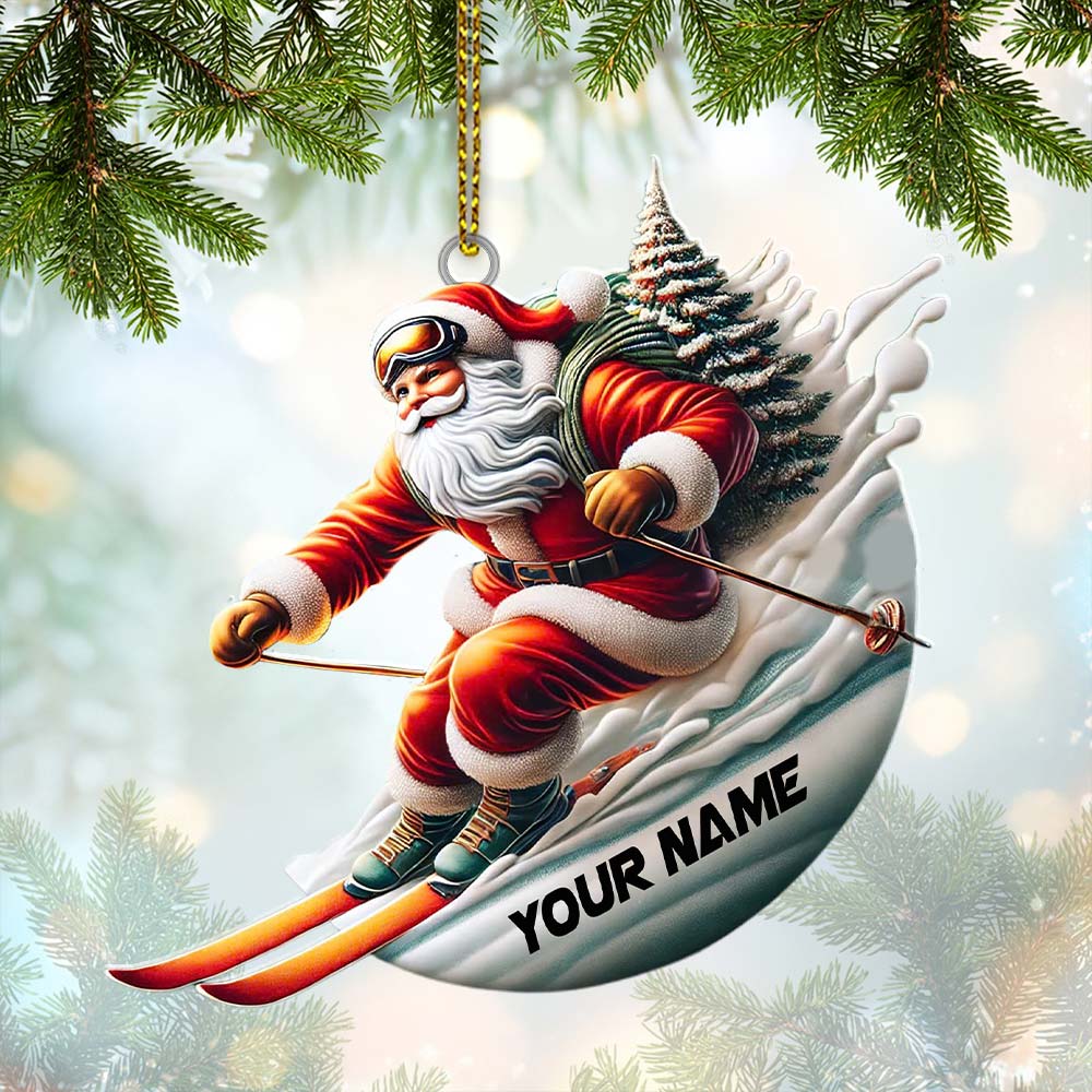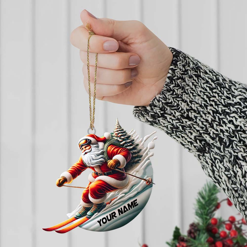 Custom Name Santa Skiing Ornament, Santa Christmas Gift Decoration