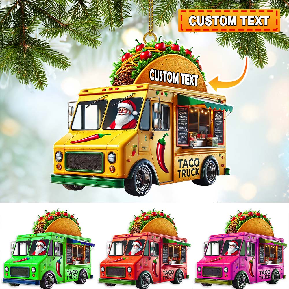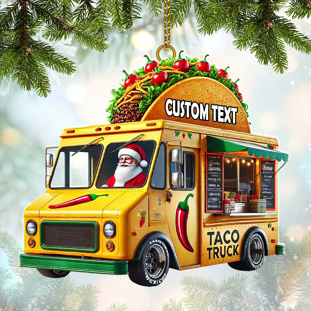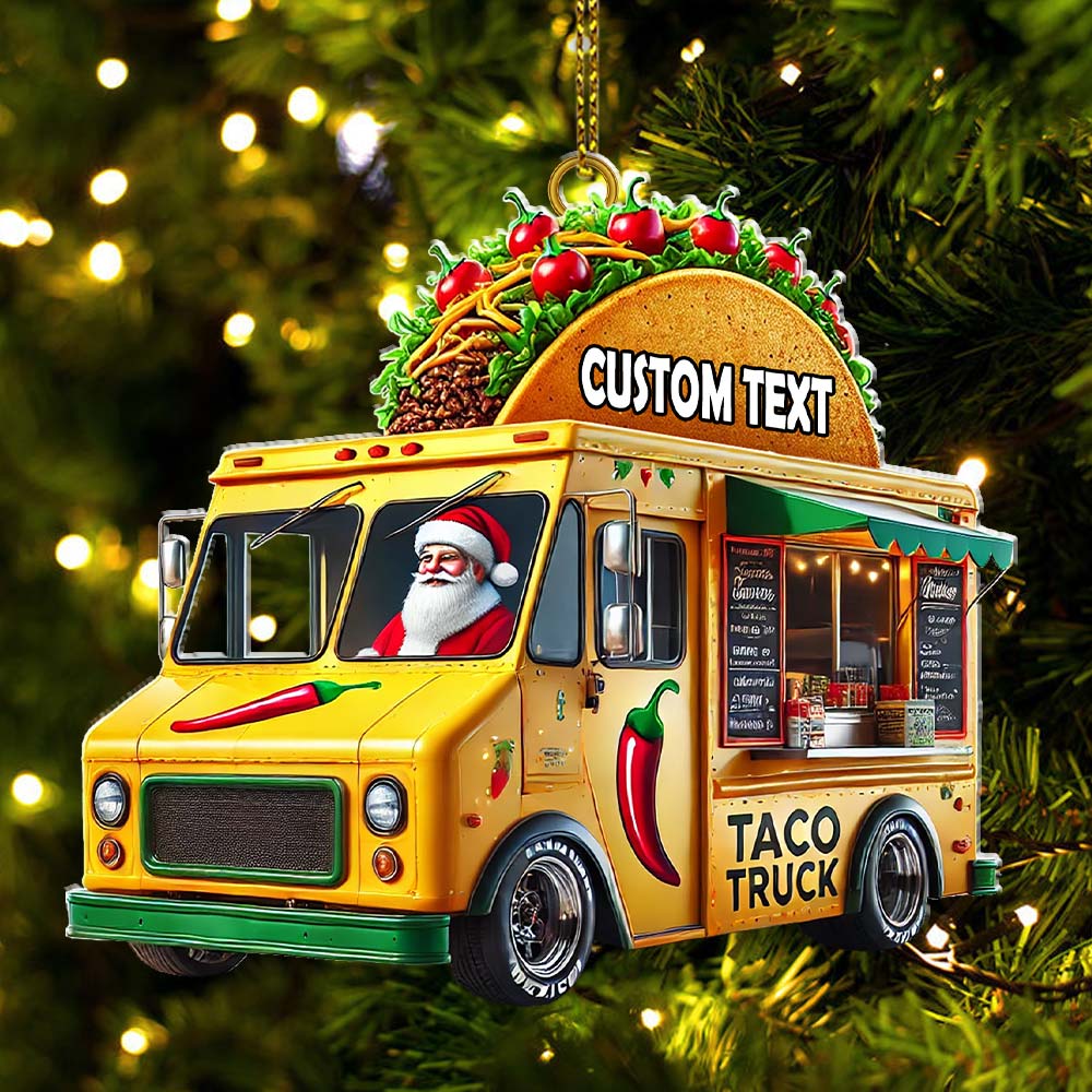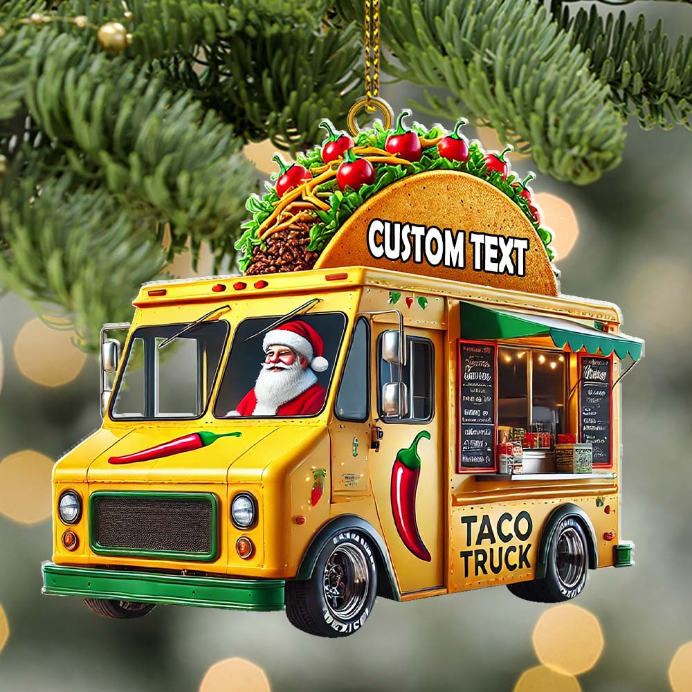 Custom Name Santa Taco Truck Ornament, Christmas Gift