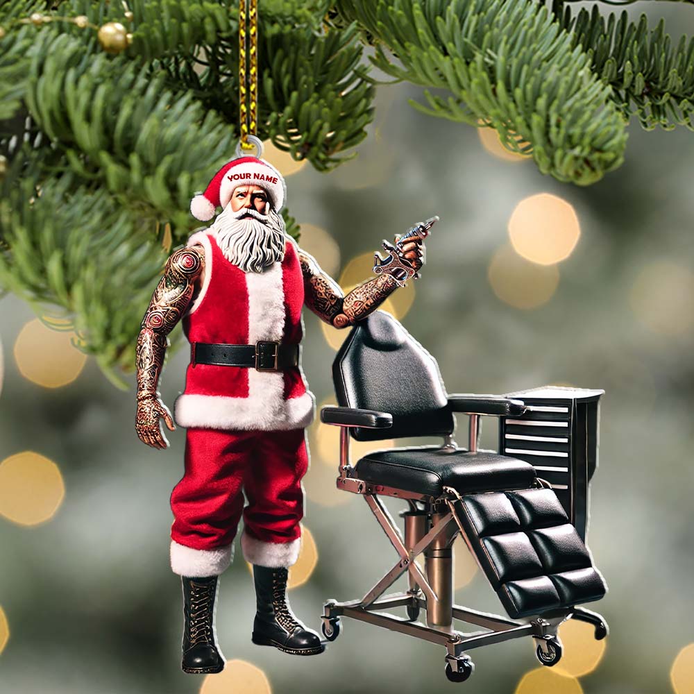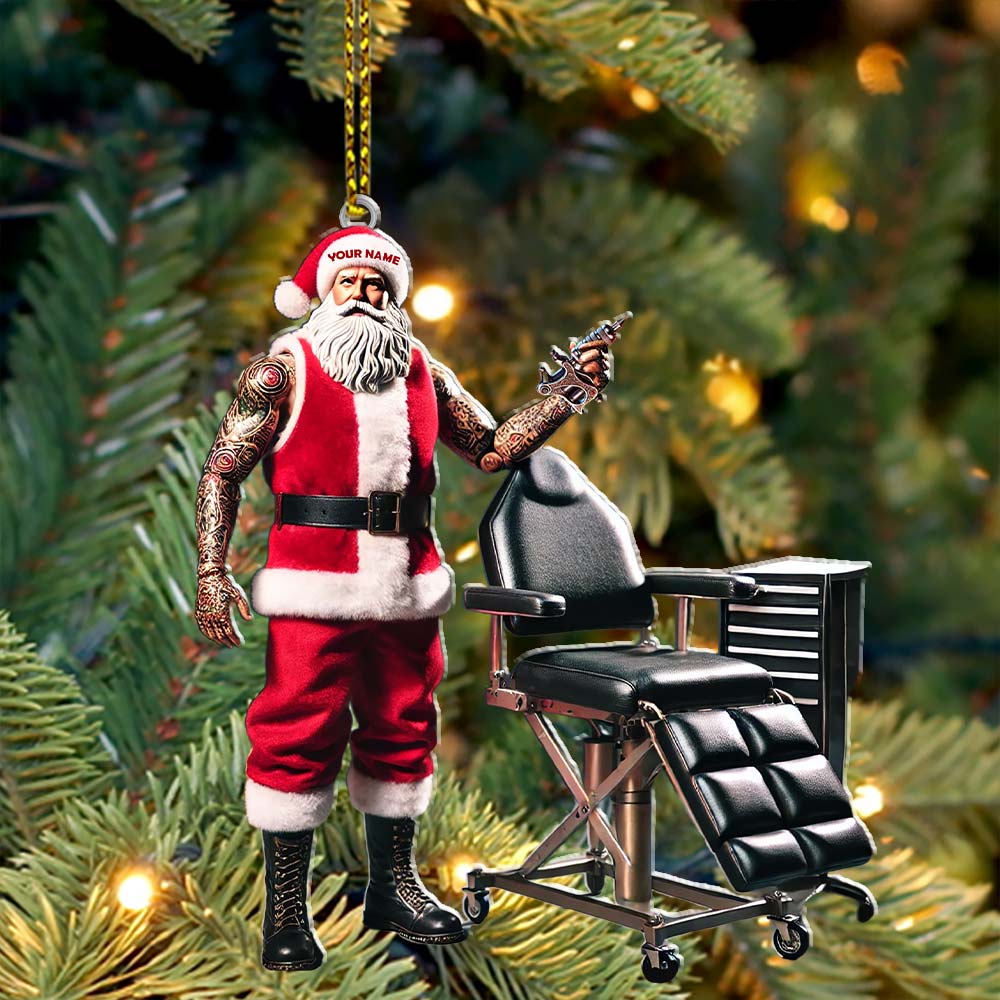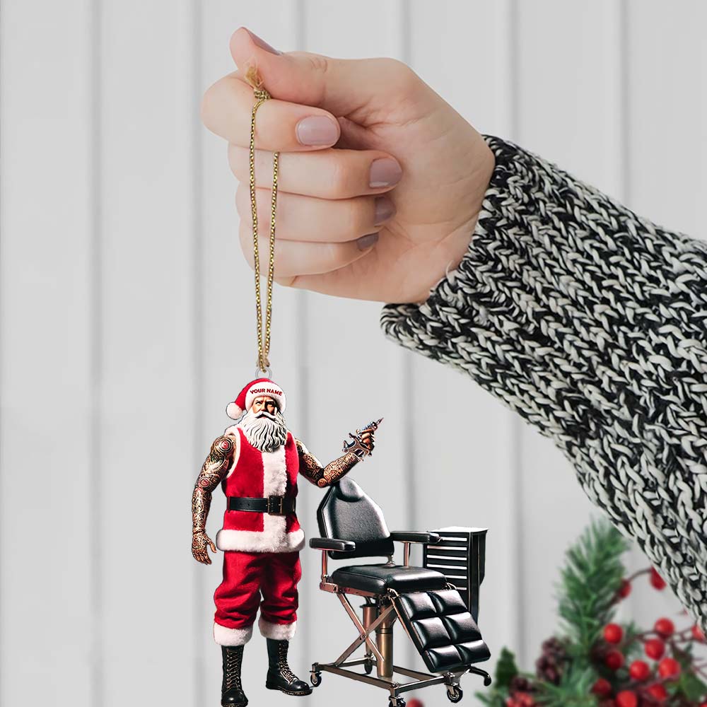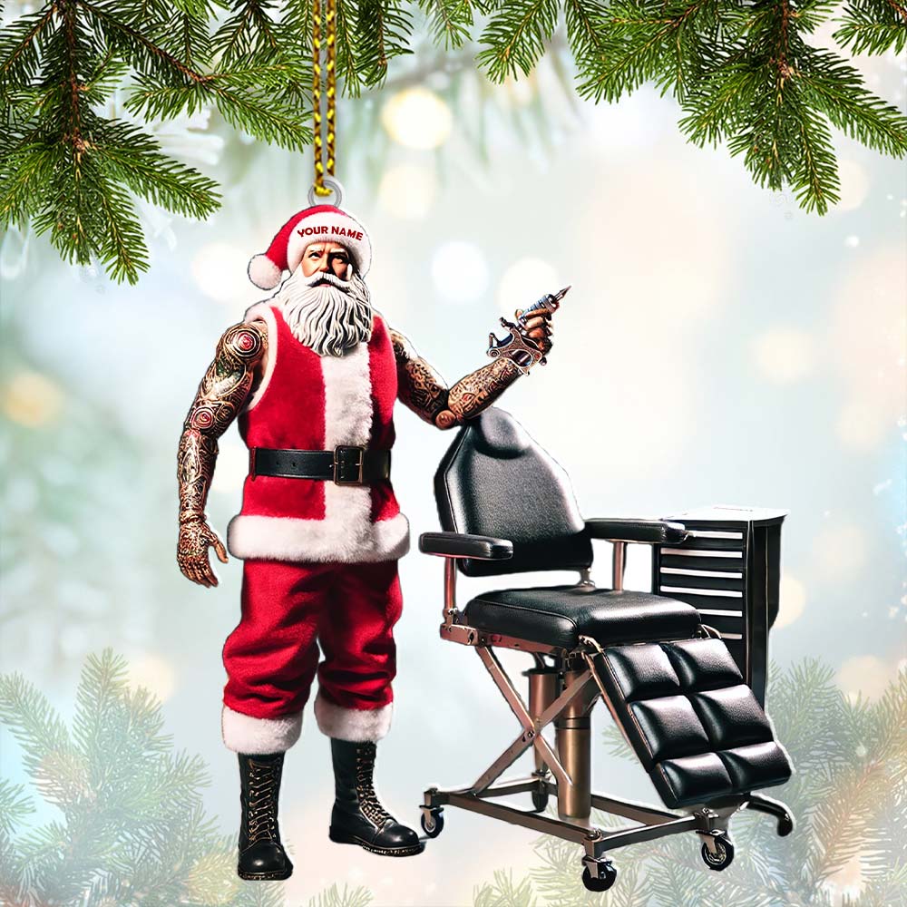 Custom Name Santa Tattoo Ornament, Christmas Decoration for Tattoo Studio
