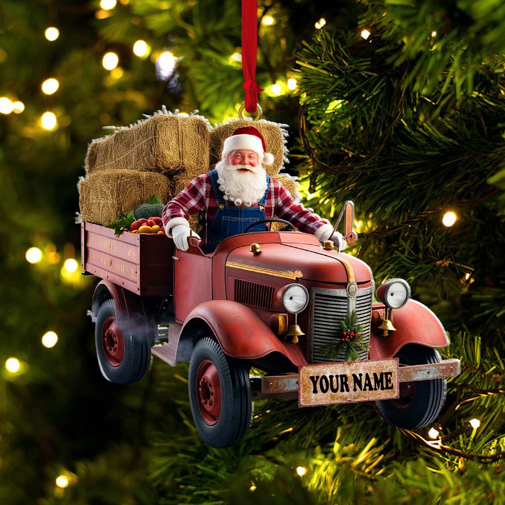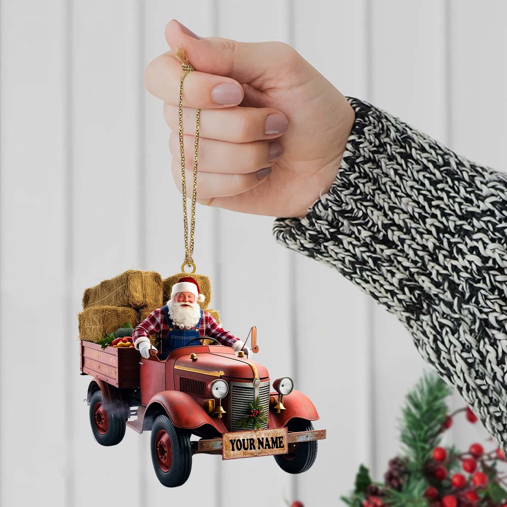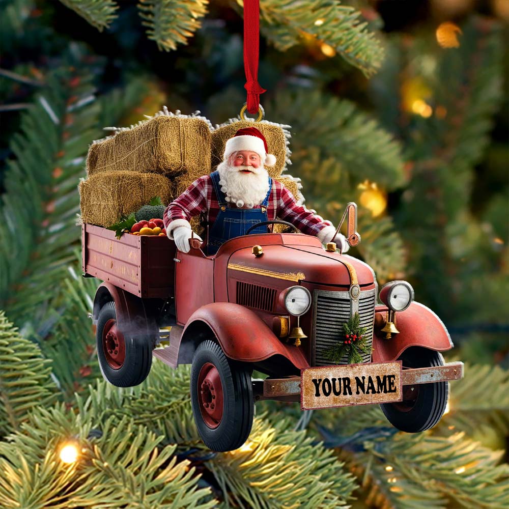 Custom Name Santa Truck Ornament, Christmas Gift Decoration