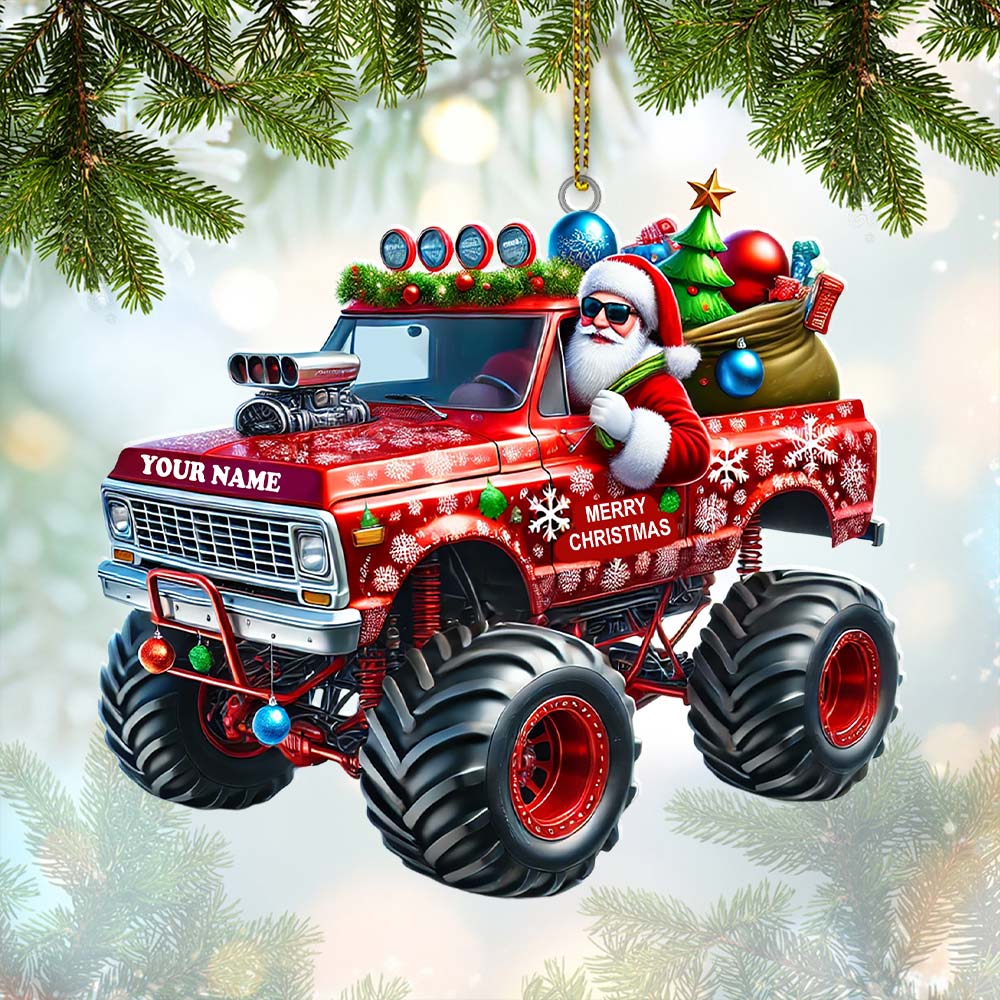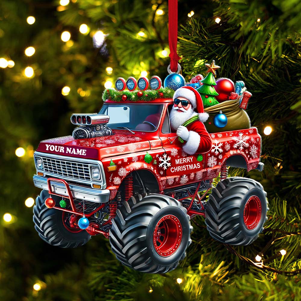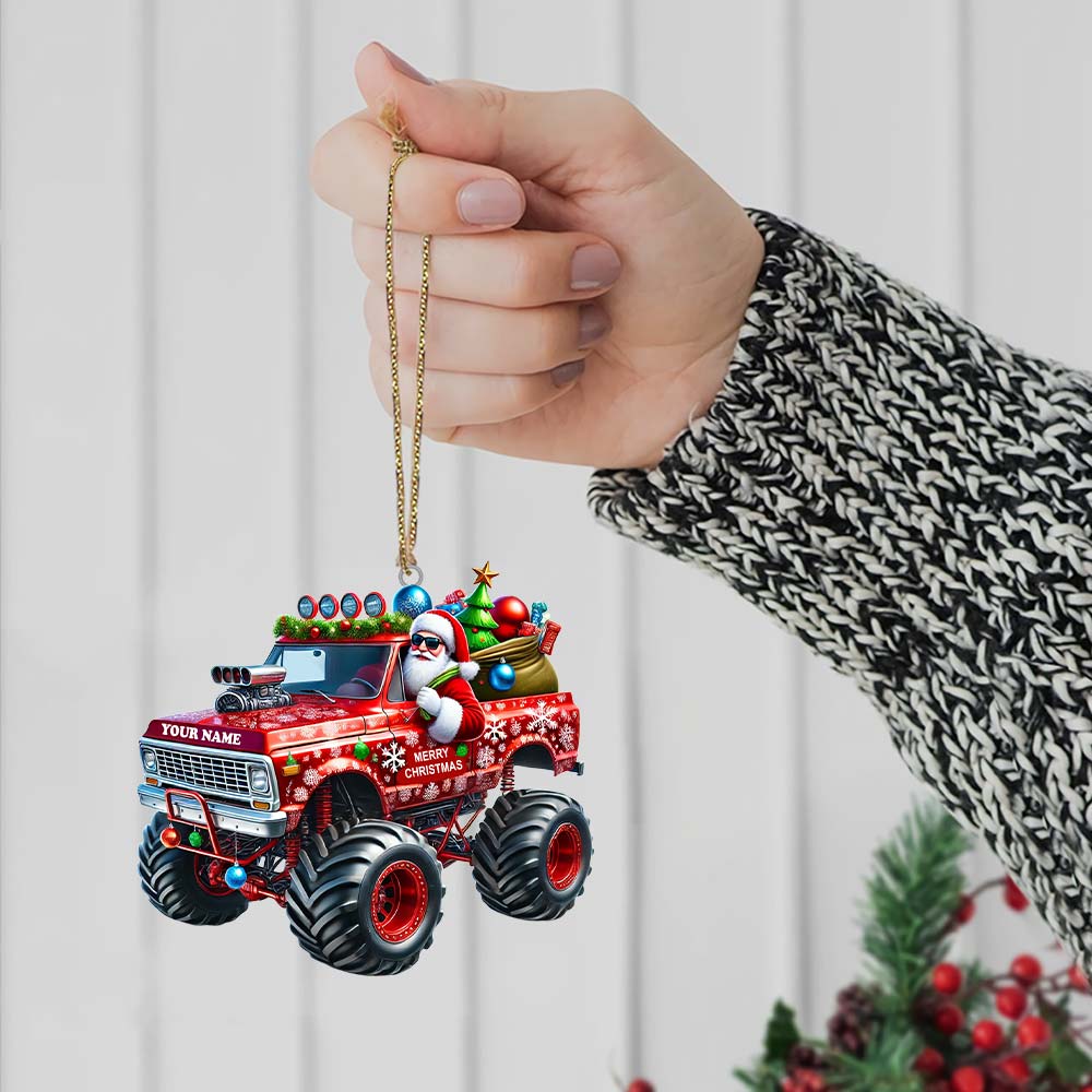 Custom Name Santa Truck Ornament, Santa Christmas Gift Decoration