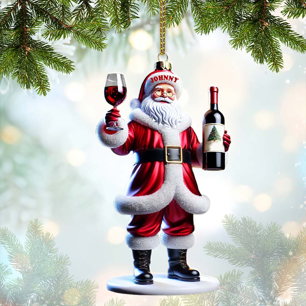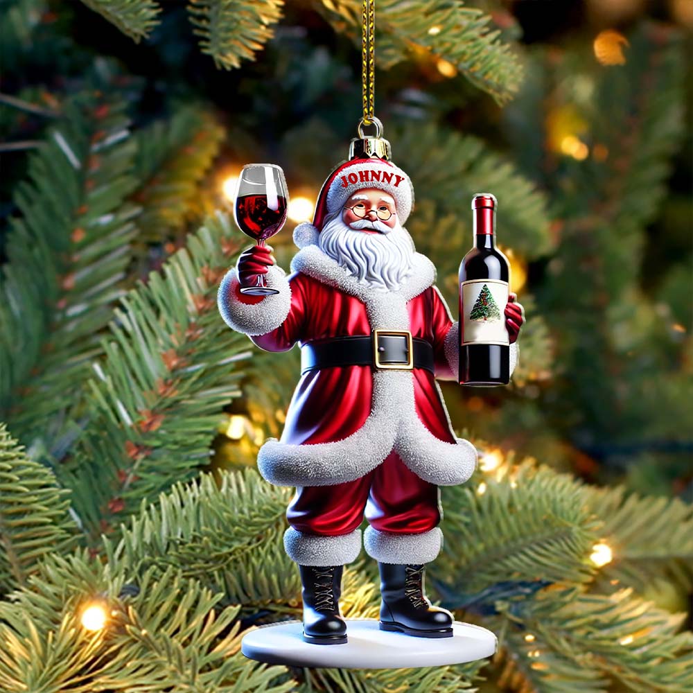 Custom Name Santa Wine Ornament, Santa Christmas Gift