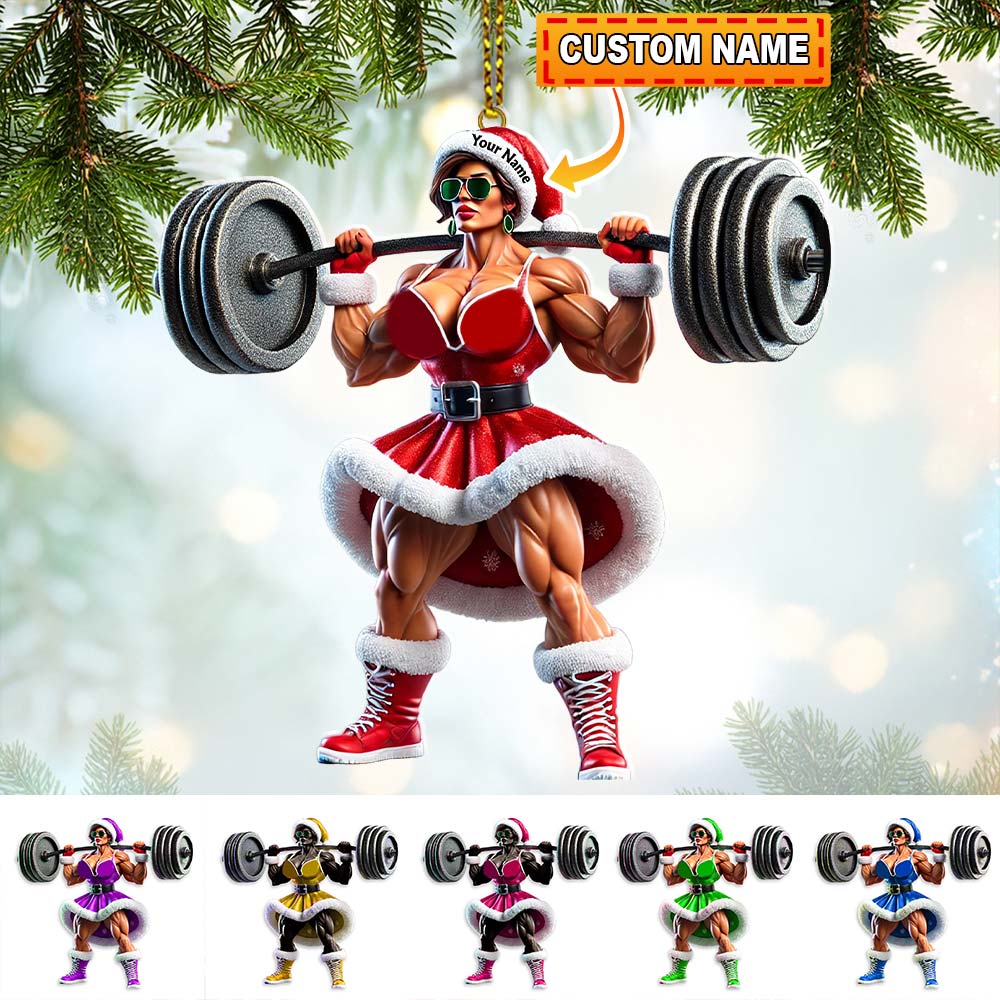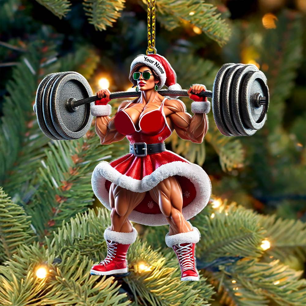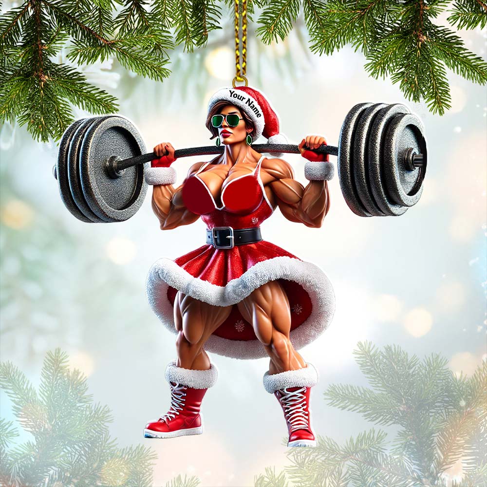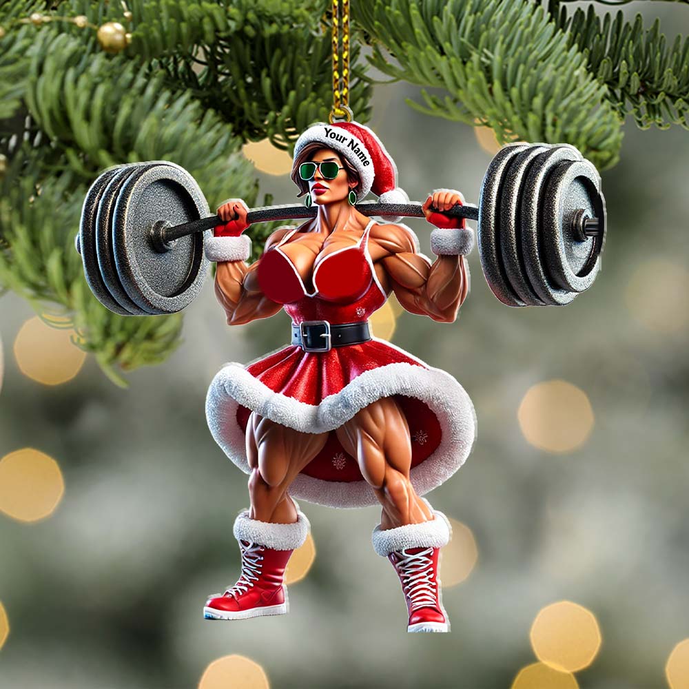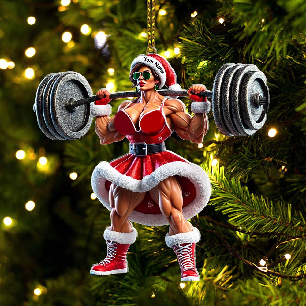 Custom Name Woman Gym Work Out Santa Ornament, Christmas Gift Decor