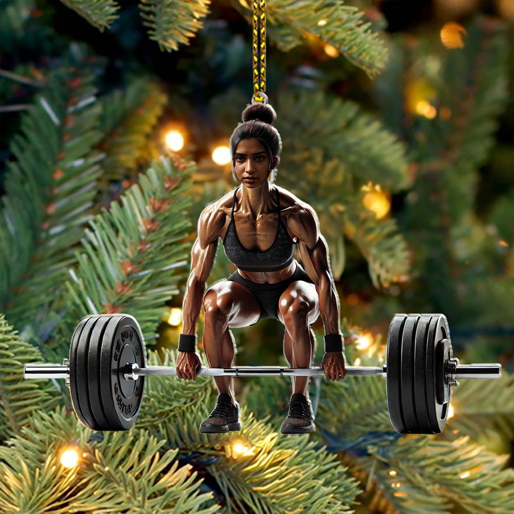 Custom Name Woman Gym Work Out Santa Ornament, Gymnastics Christmas Gift