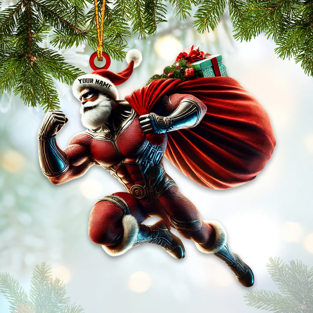 Custom Name Work Out Santa Ornament, Christmas Gift Decoration