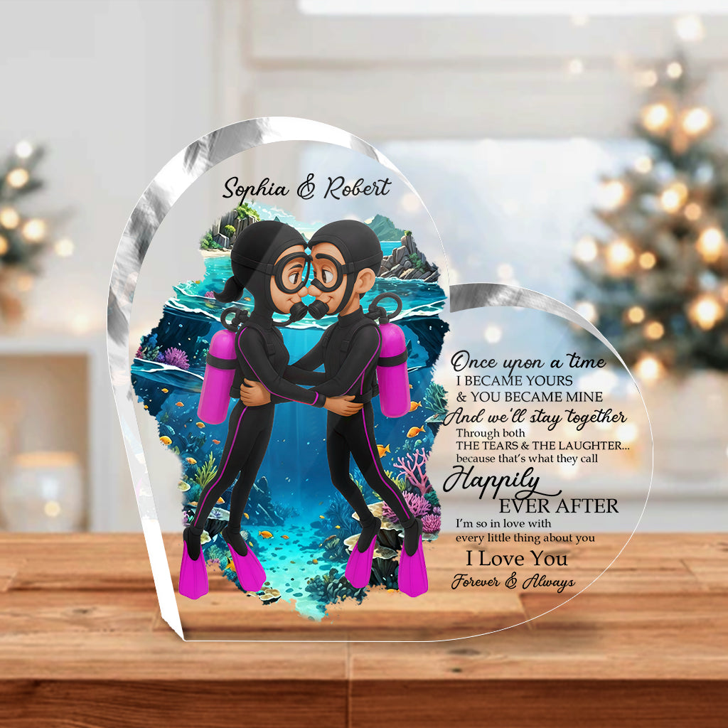 Diving Couple, Love Forever, Gift For Couple - Personalized Custom Shaped Acrylic Plaque