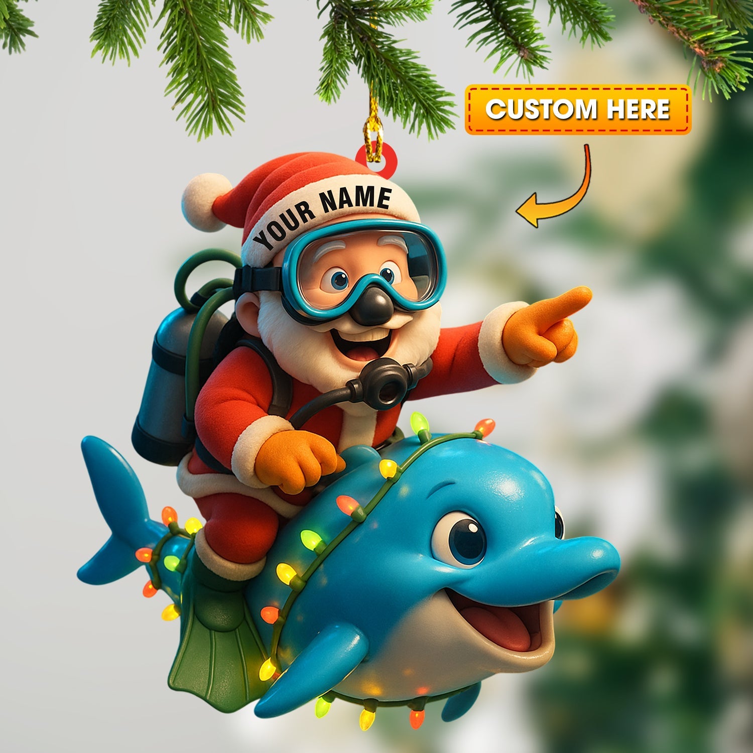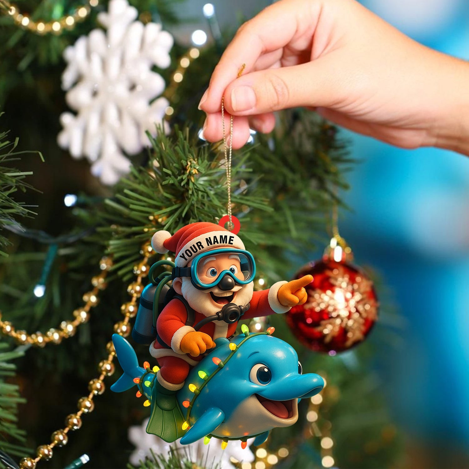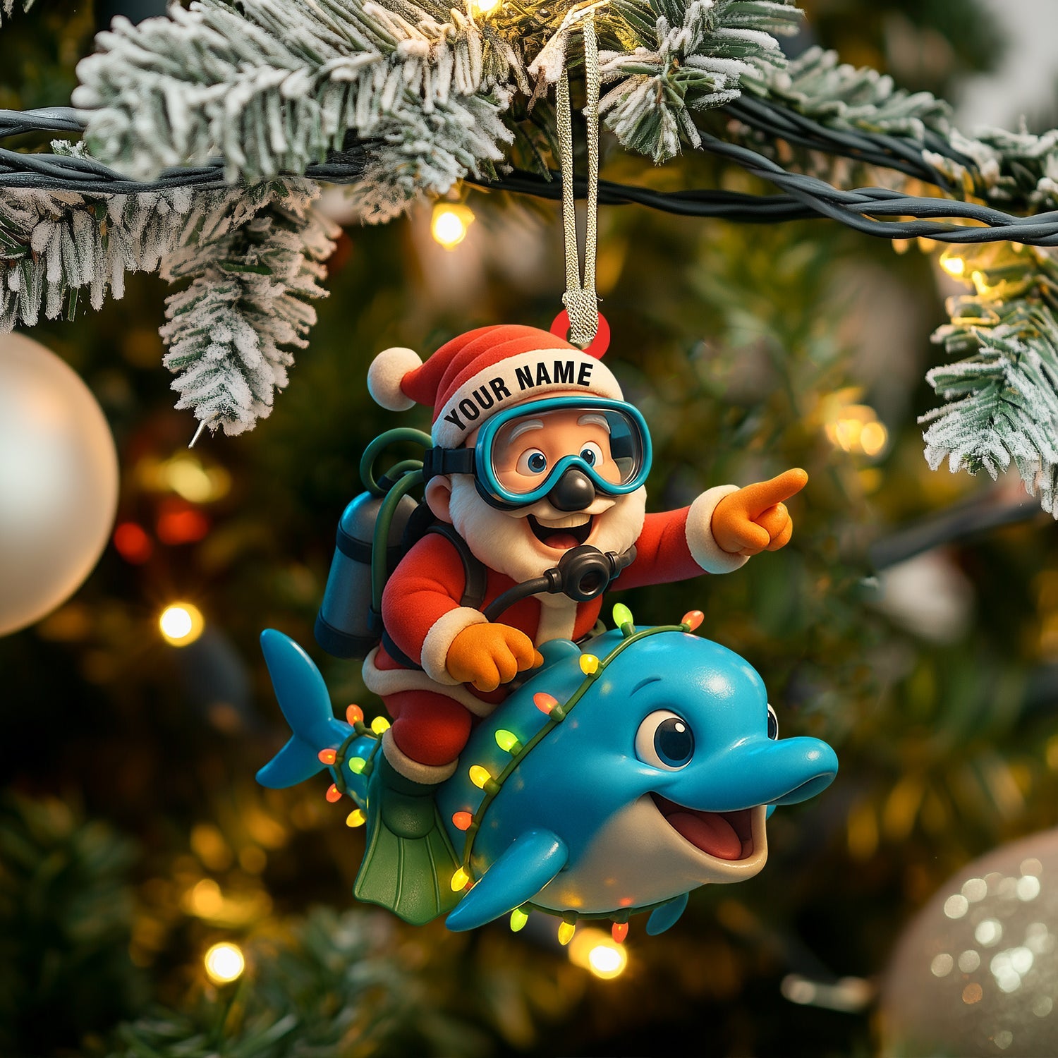 Diving Santa Home Decor, Christmas Ornament, Personalized Ornament