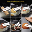- ✅All in one design. It is not only a frying shovel but also a clamp/clip. It slices and scoops, sandwiches steaks and makes flipping easier. The special hollow design makes it easier for oil to escape and reduces excess oil. The wide-necked tongs are easy to grip, whether it's vegetables, a large steak or bread.