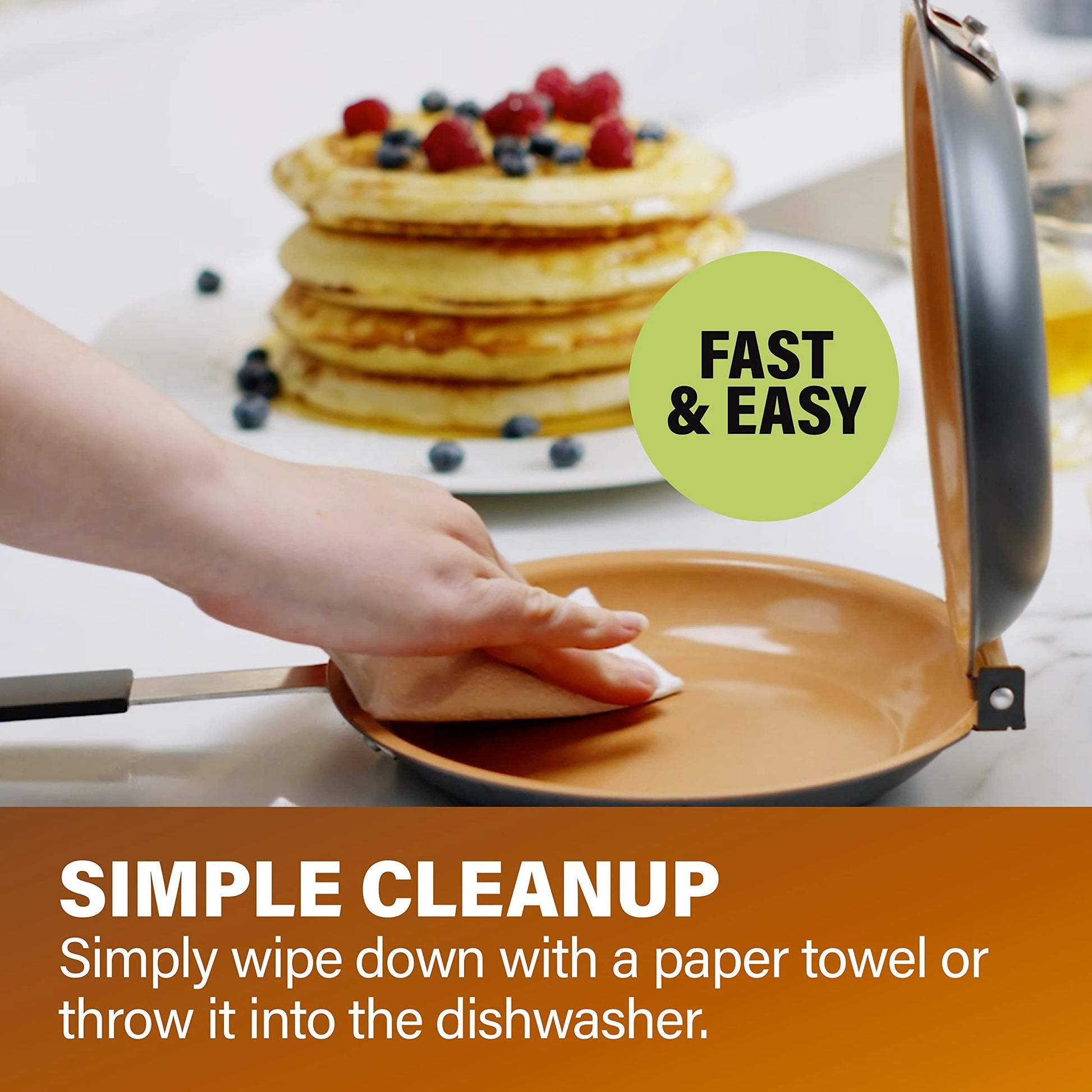 Quick double-sided frying pan makes it easier to make delicious pancakes.