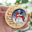 I Love You To The Moon And Back, Snowman - Custom Photo And Names- Personalized 2 Sides Ceramic Ornament - Gift For Family, Memorial Gift