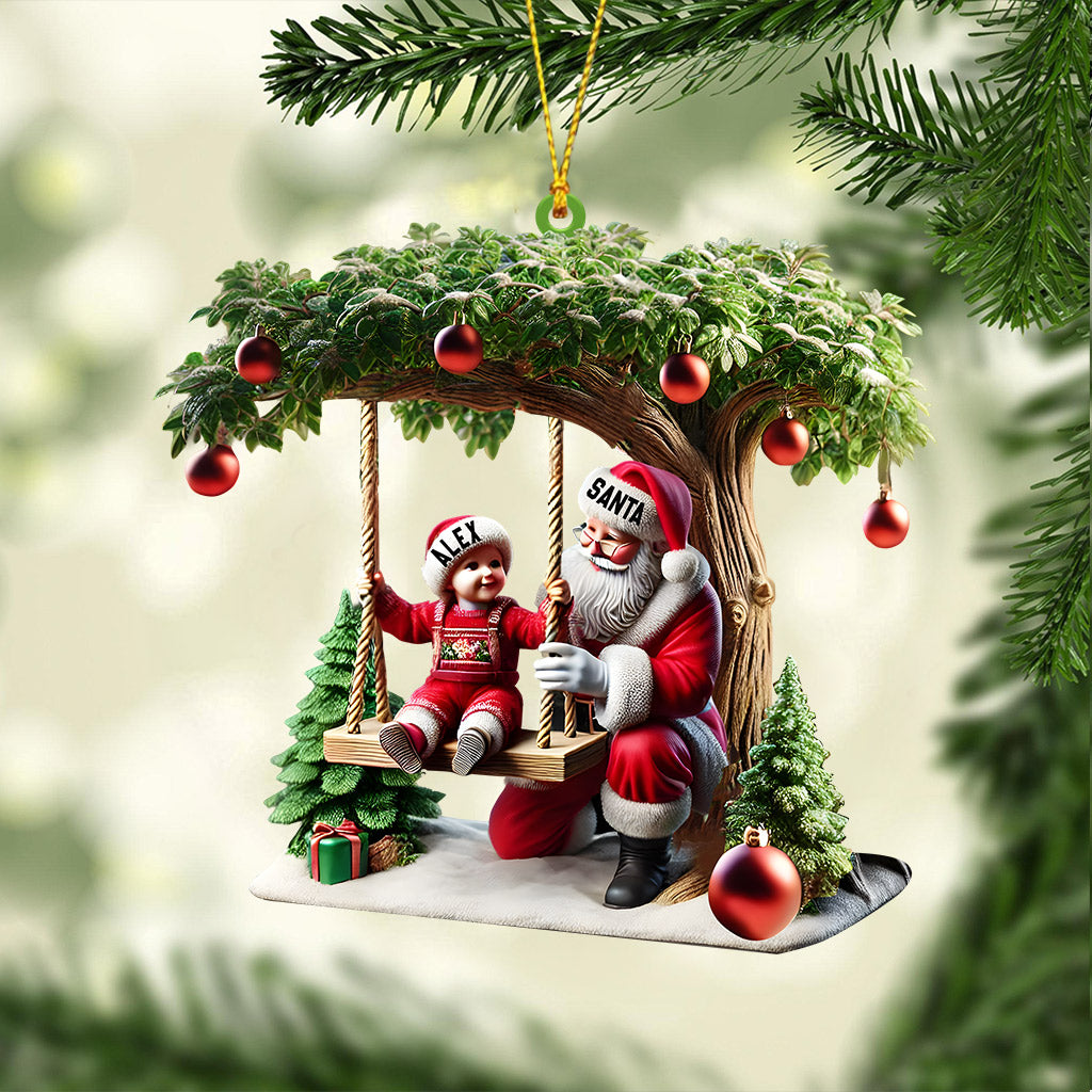Kid And Santa Decor Christmas Ornament, Personalized Ornament