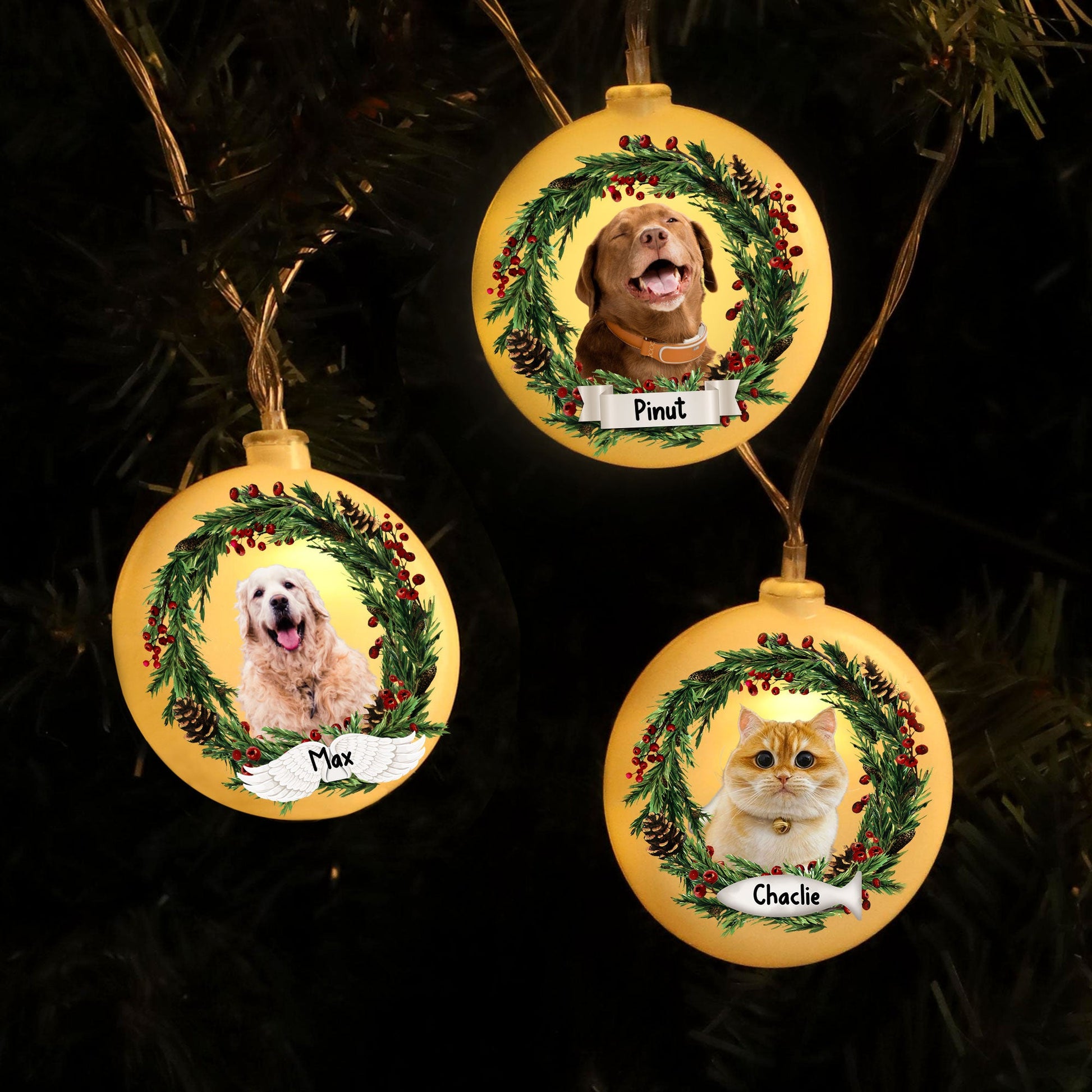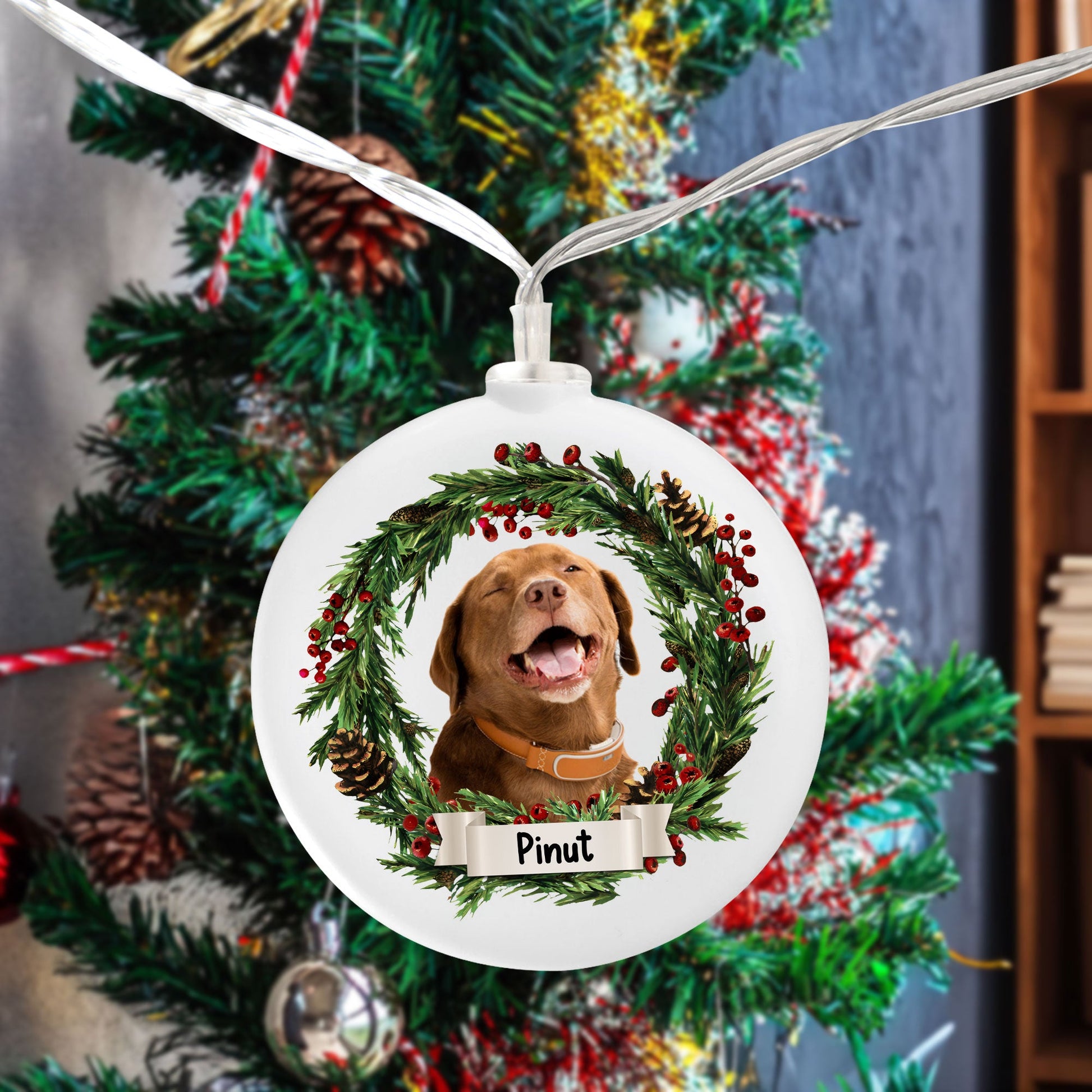Merry Christmas - Custom Photo And Name, Personalized Round Plastic Led String Light - Gift For Christmas, Gift For Family, Gift For Pet Lover