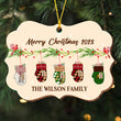 Merry Christmas Glove Family, Custom Name In Glove - Personalized Custom Shaped Wooden Ornament - Gift For Family, Christmas Gift