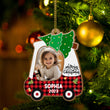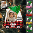 Merry Christmas Kid On Car, Custom Photo And Text - Personalized Custom Shaped Wooden Ornament - Christmas Gift For Family