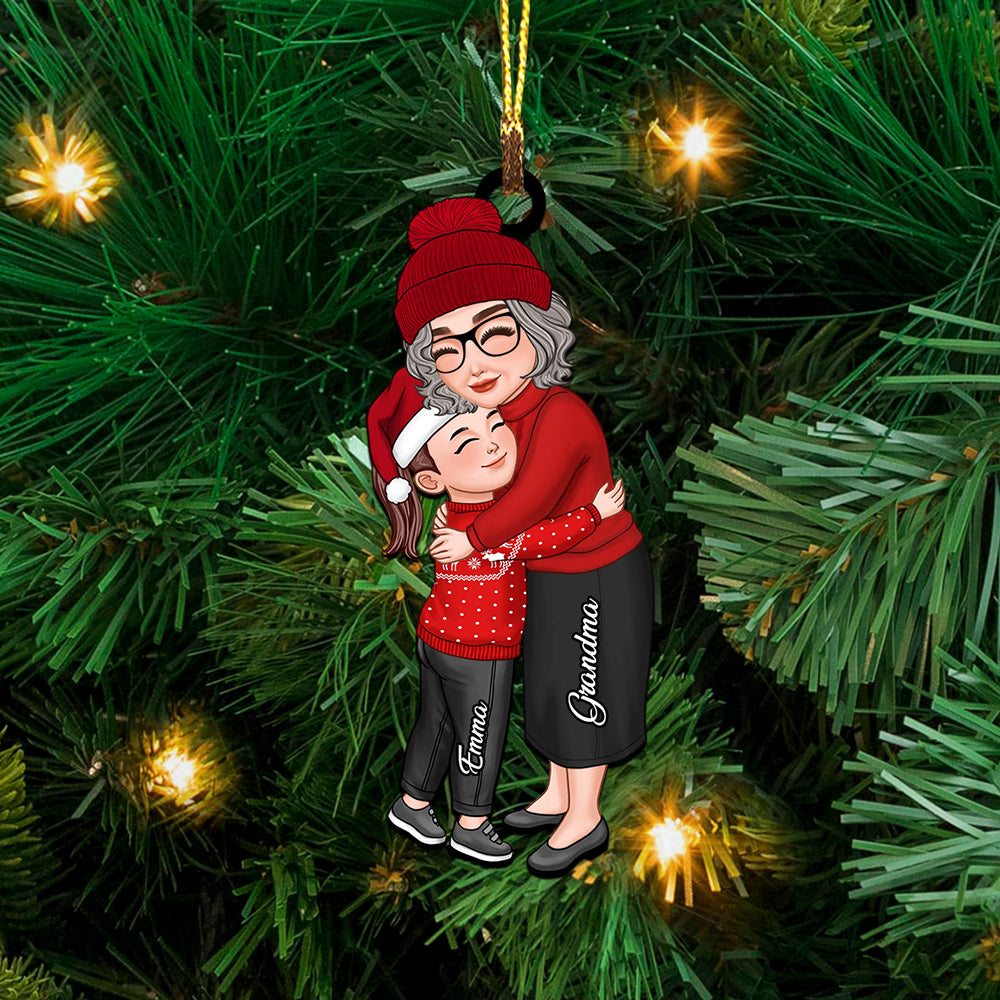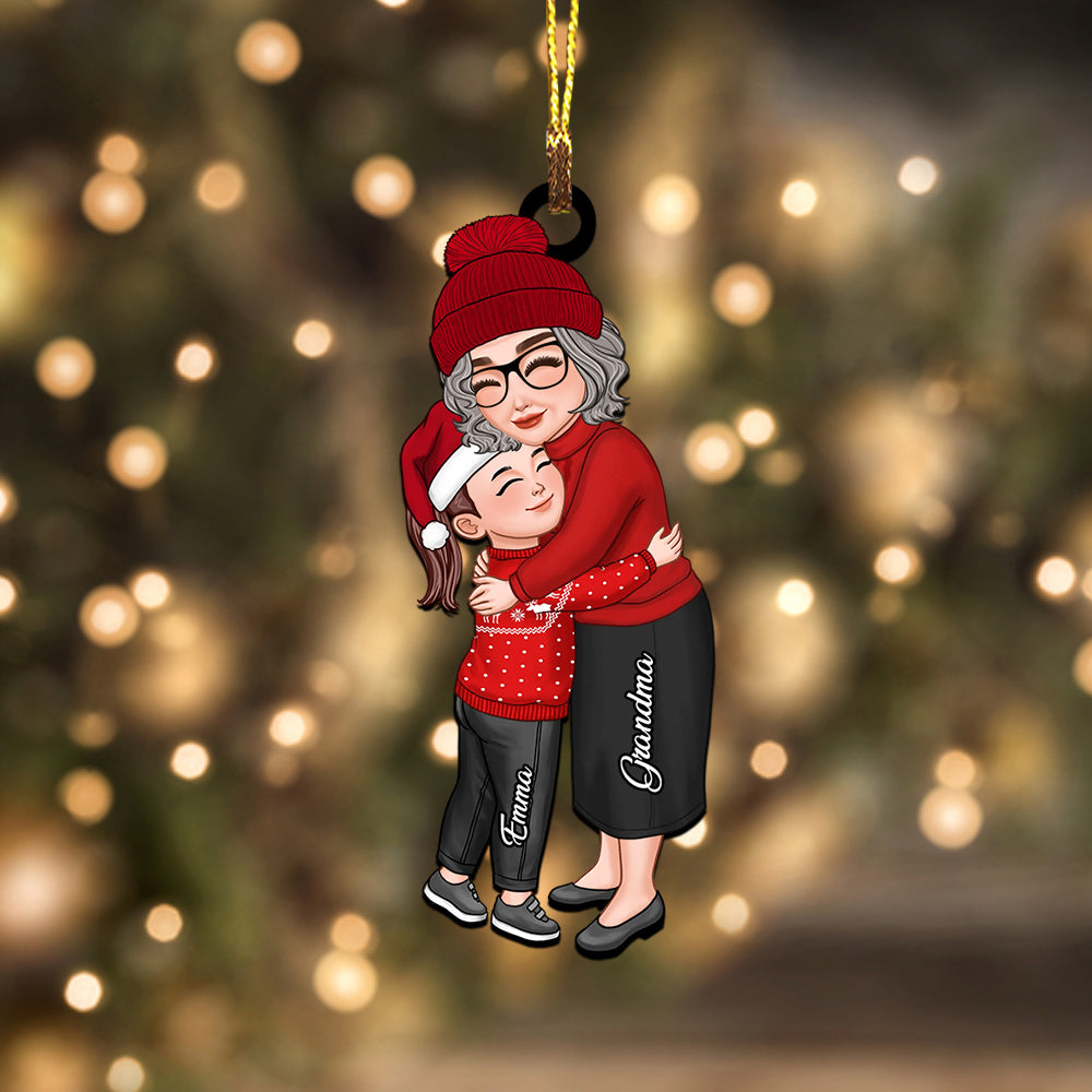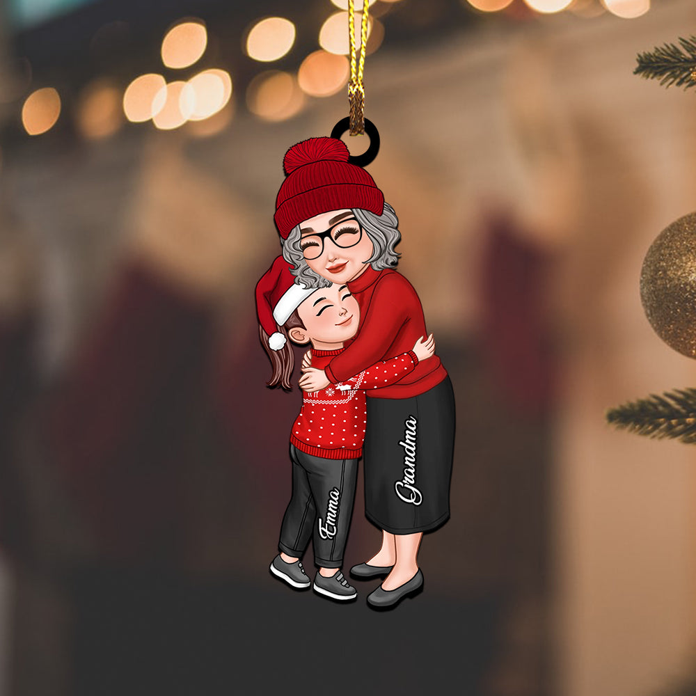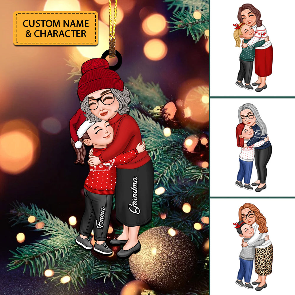 Mom, Grandma Hugging Kid, Grandkid - Christmas Gift For Family, Custom Appearances And Names - Personalized Acrylic Ornament