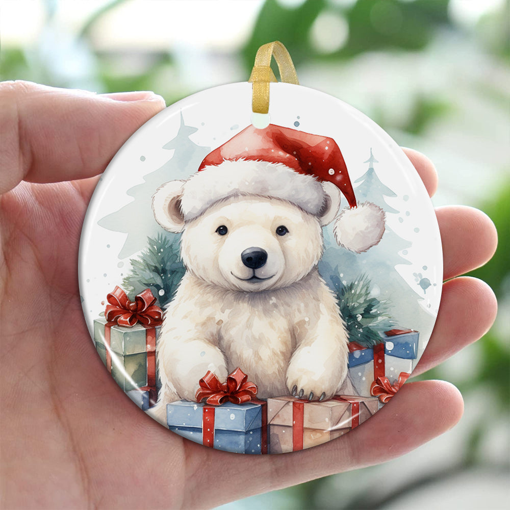 Personalized Xmas Background Ceramic Ornament - Gift For Christmas, Family Gift
