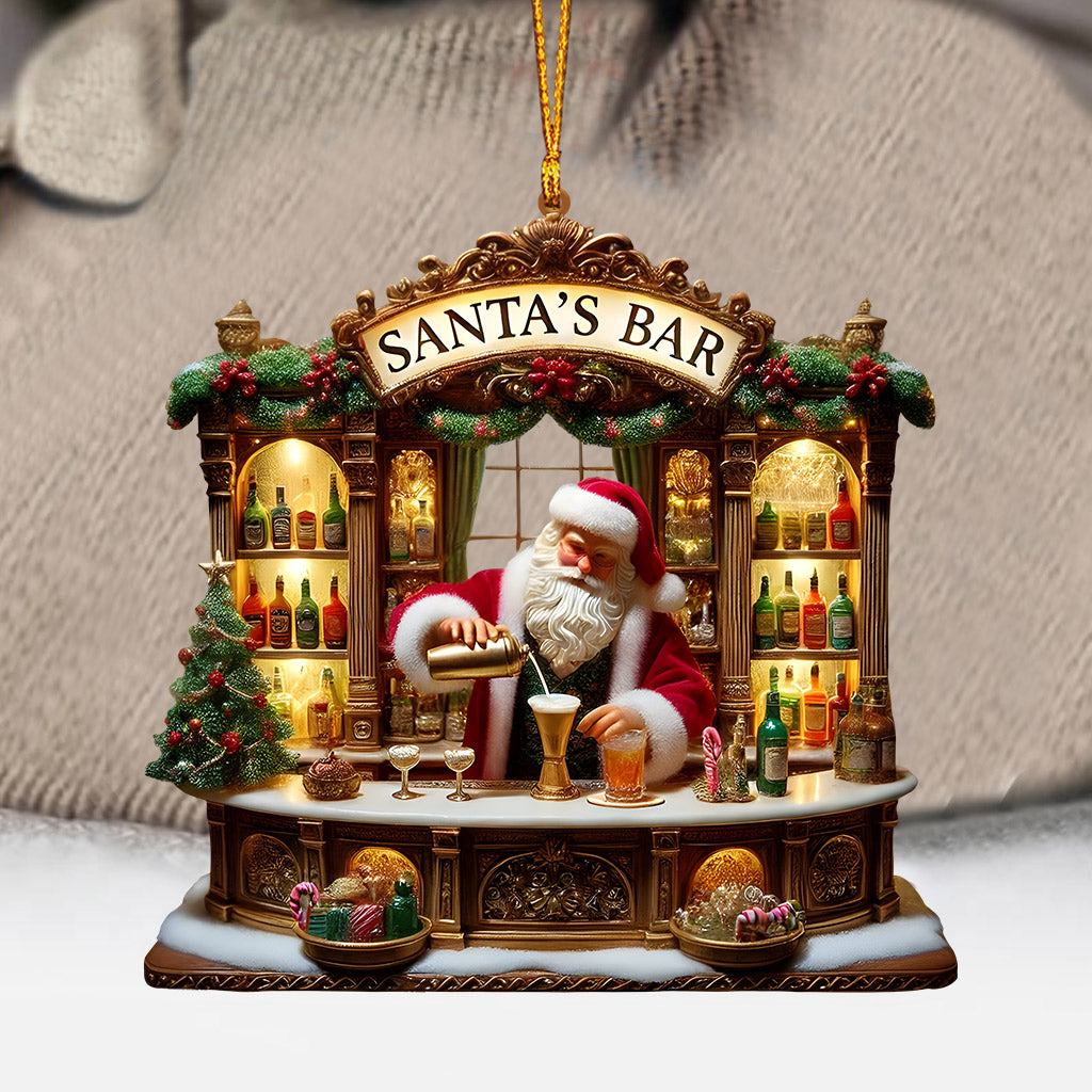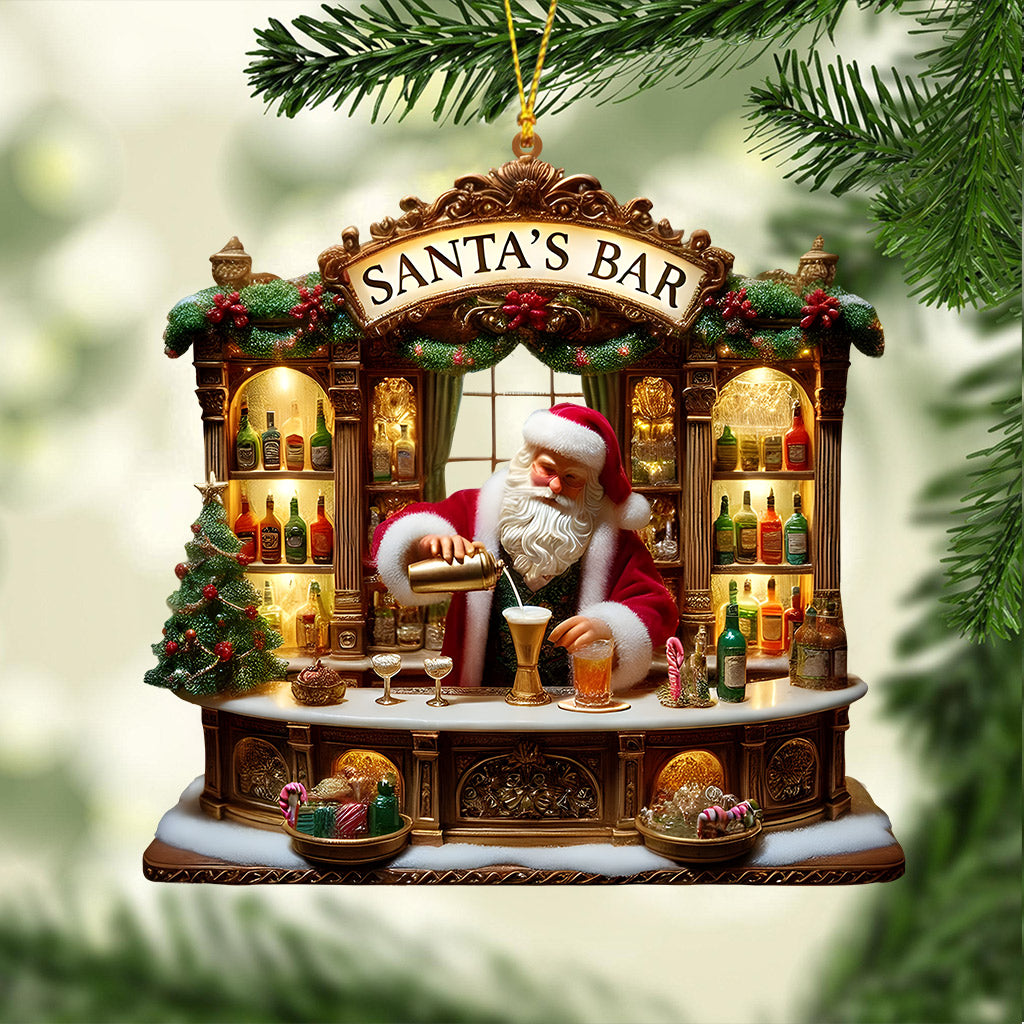 Santa's Bar Christmas Ornament, Bartender Ornament, Personalized Ornament
