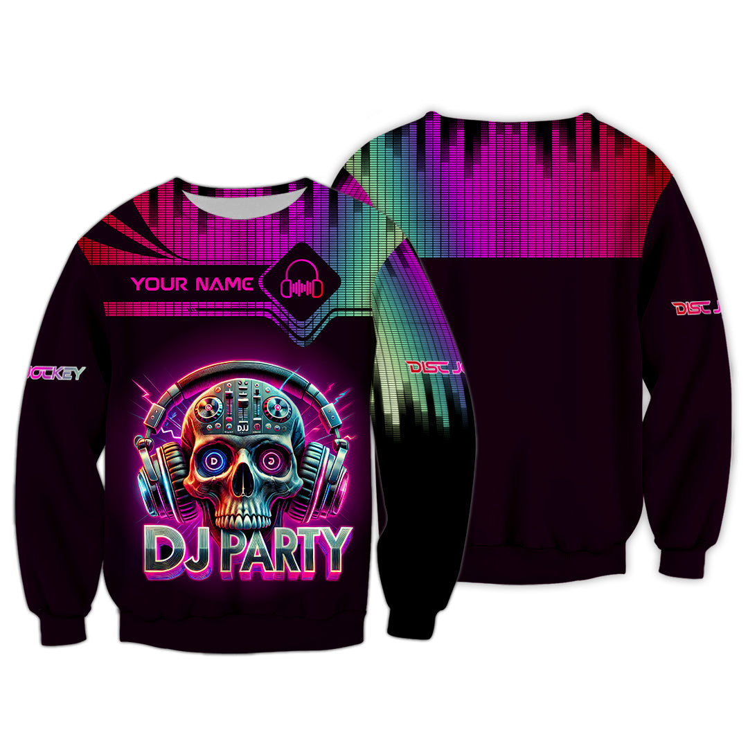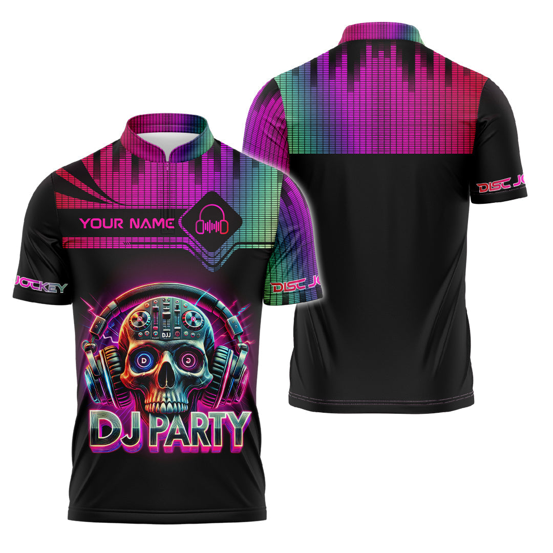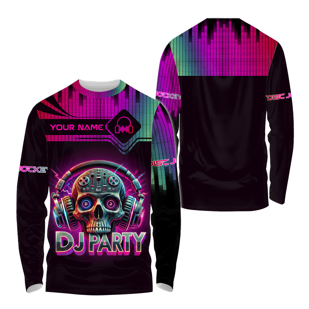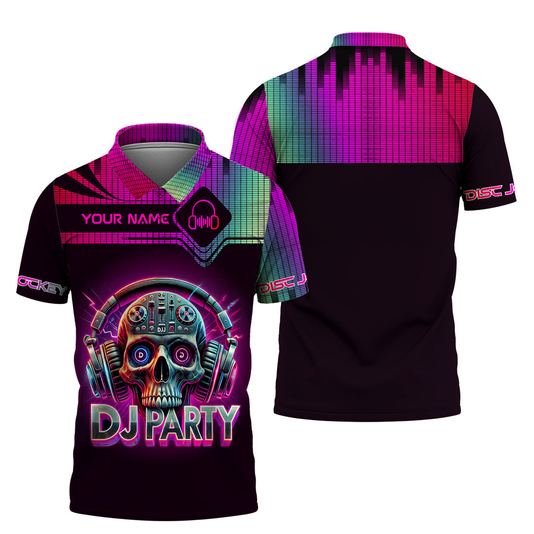 Unisex Shirt, Custom Name Disc Jockey Shirt, DJ Skull Hoodie Shirt Polo Long Sleeve, Gift for DJ