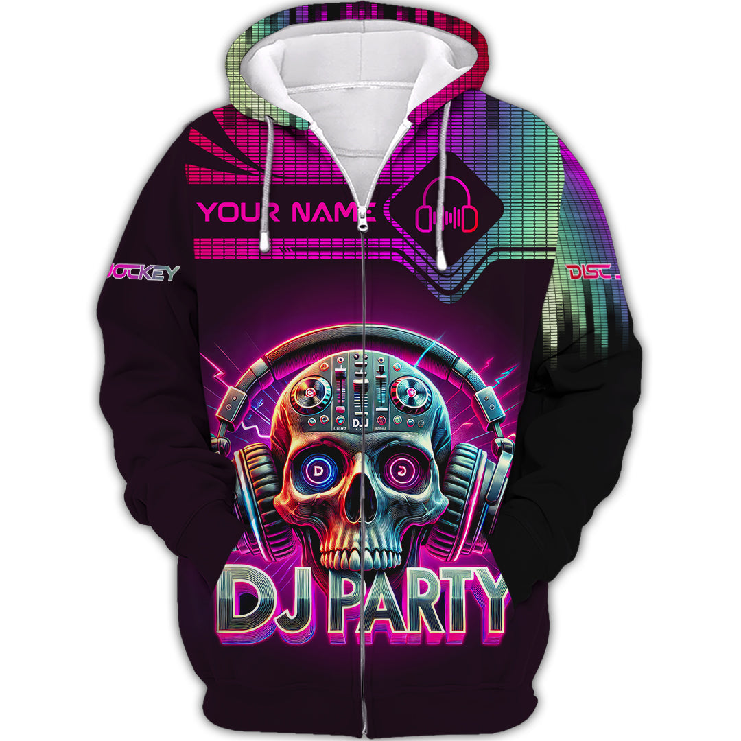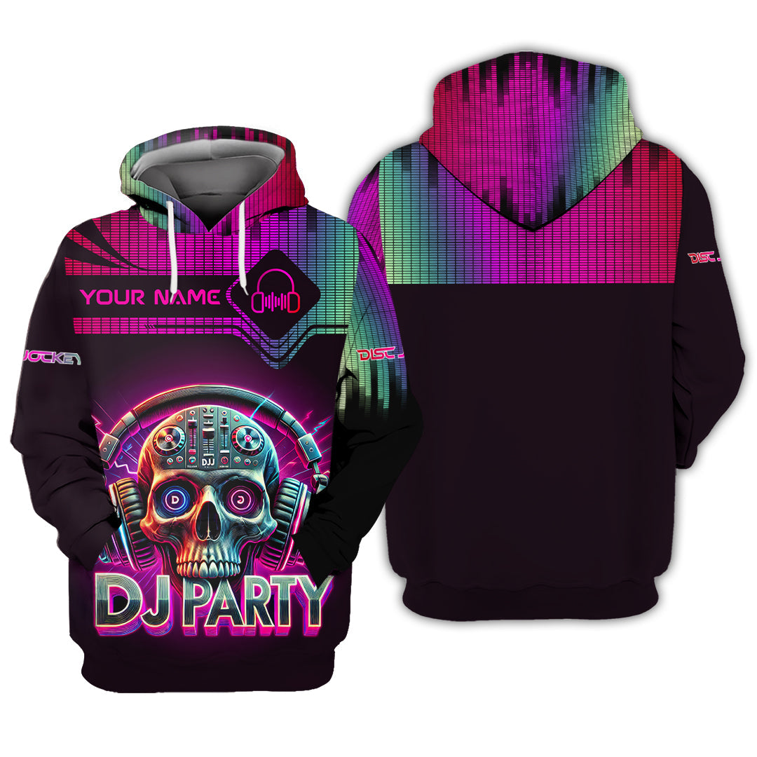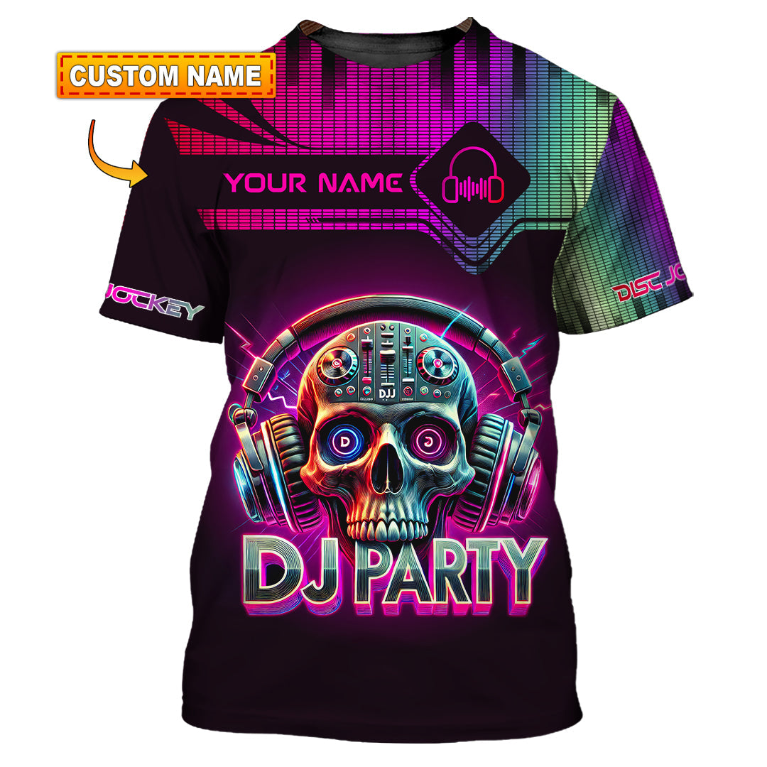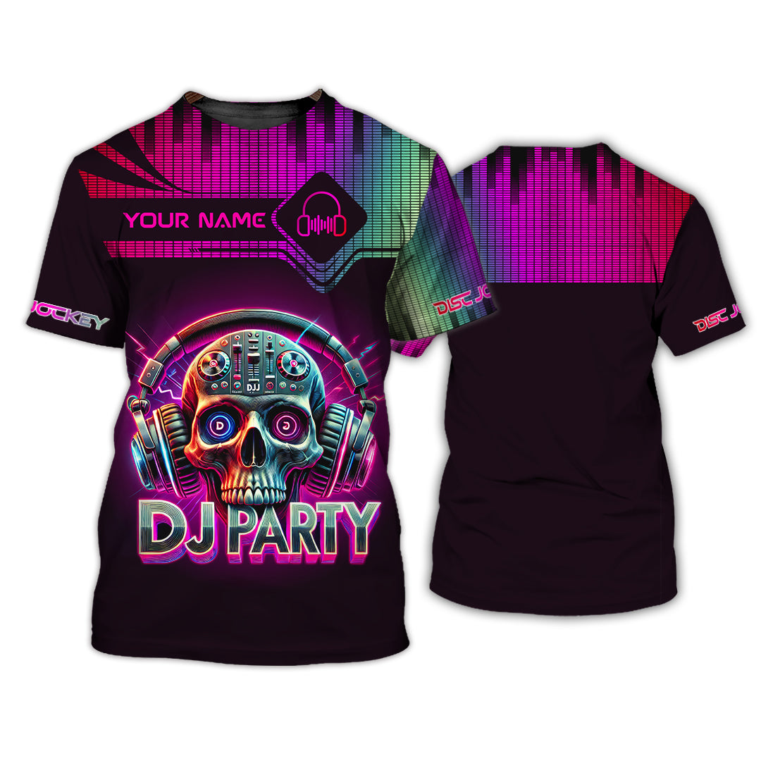 Unisex Shirt, Custom Name Disc Jockey Shirt, DJ Skull Hoodie Shirt Polo Long Sleeve, Gift for DJ